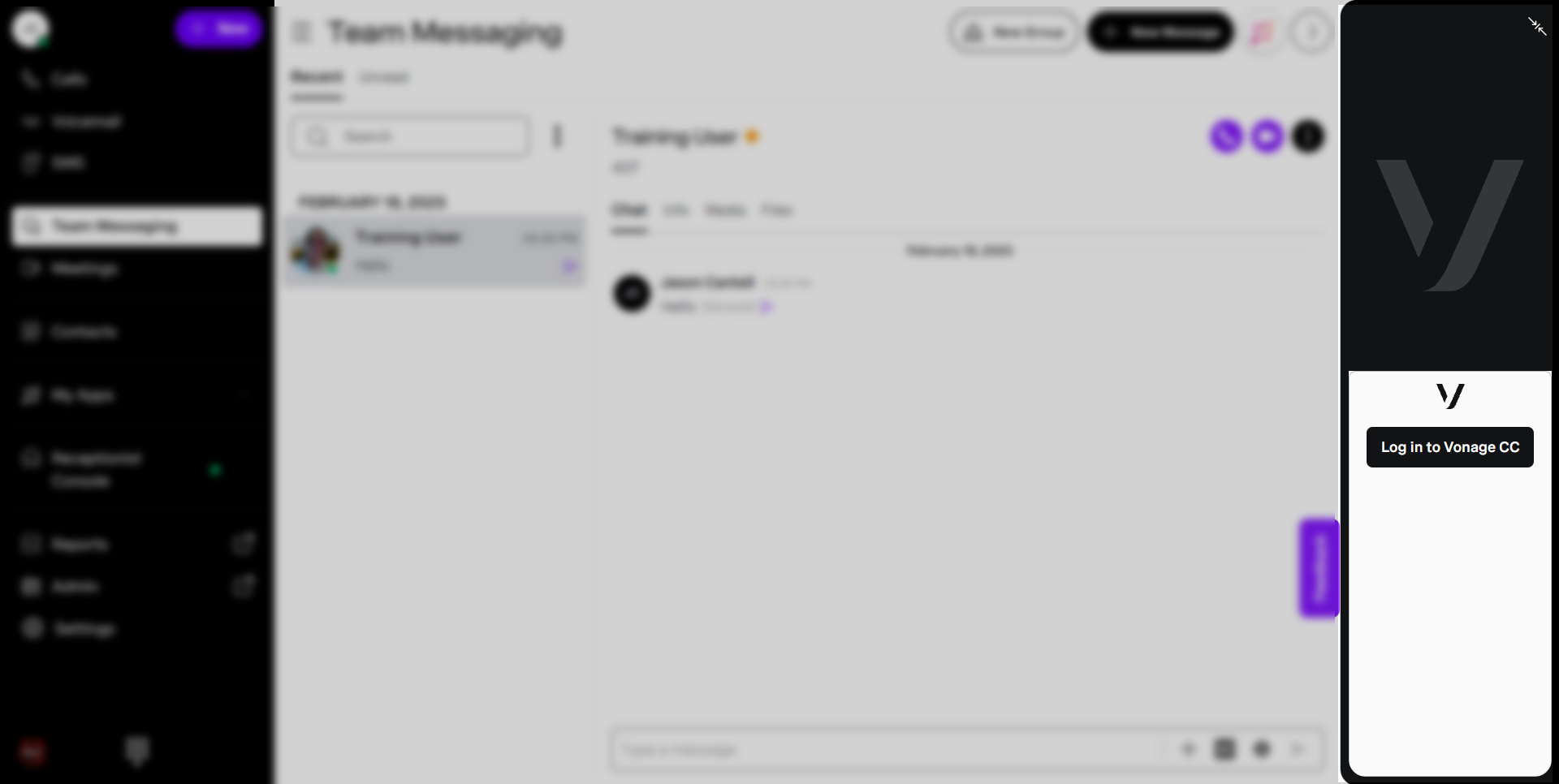 cover. This will expand Contact Center into the existing dashboard. - Click Log in to Vonage CC