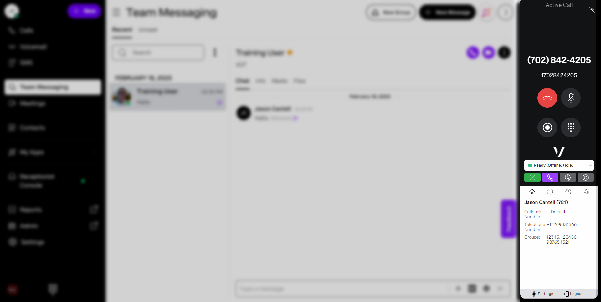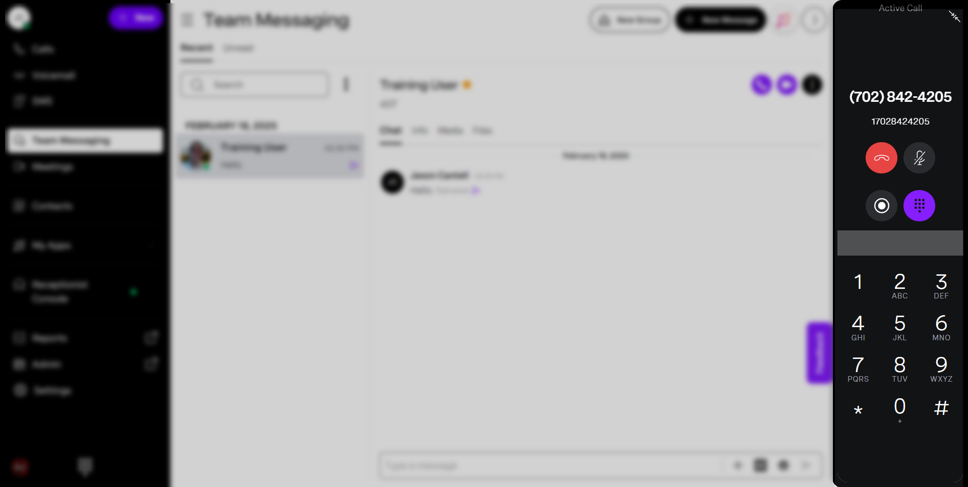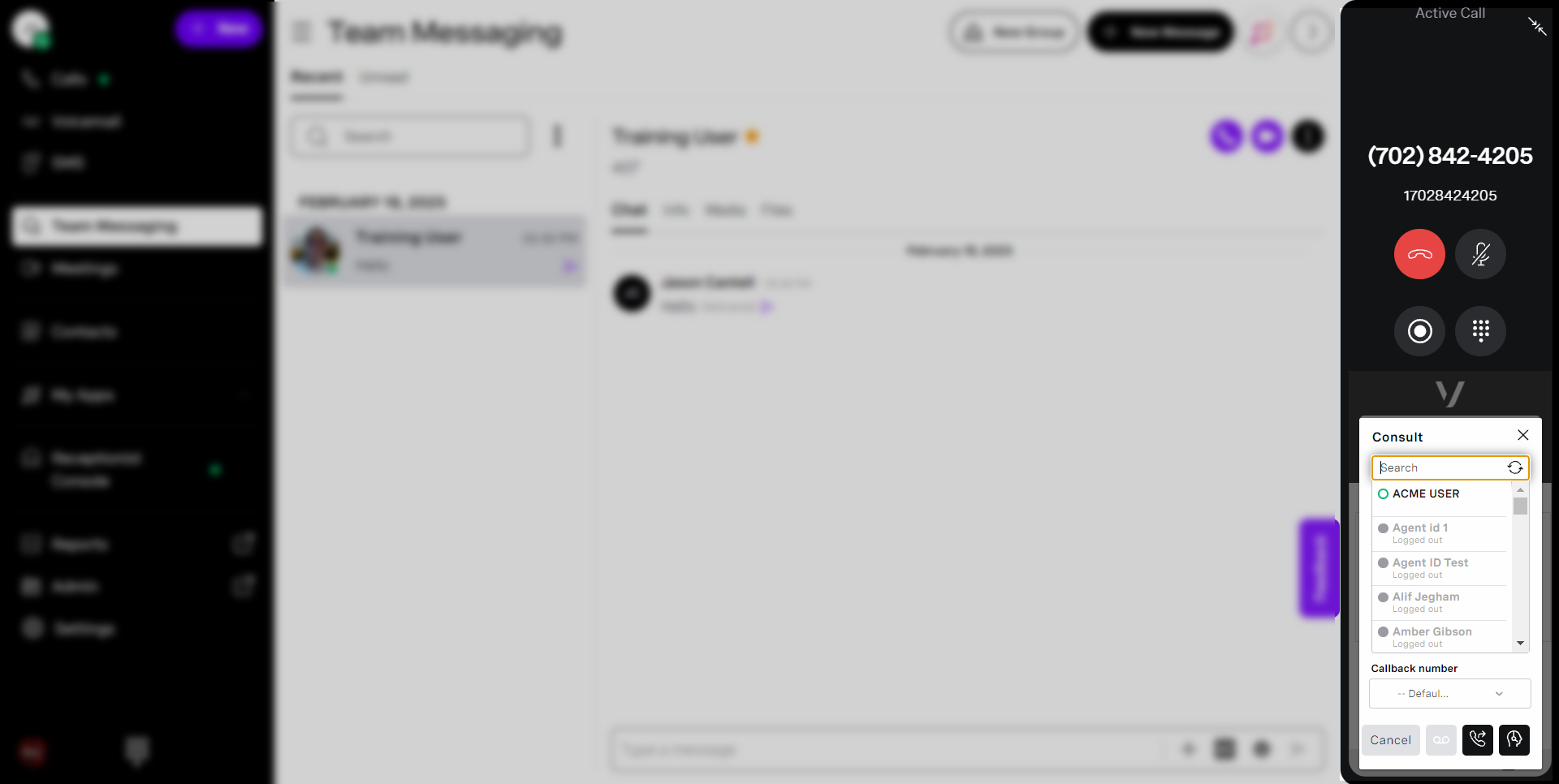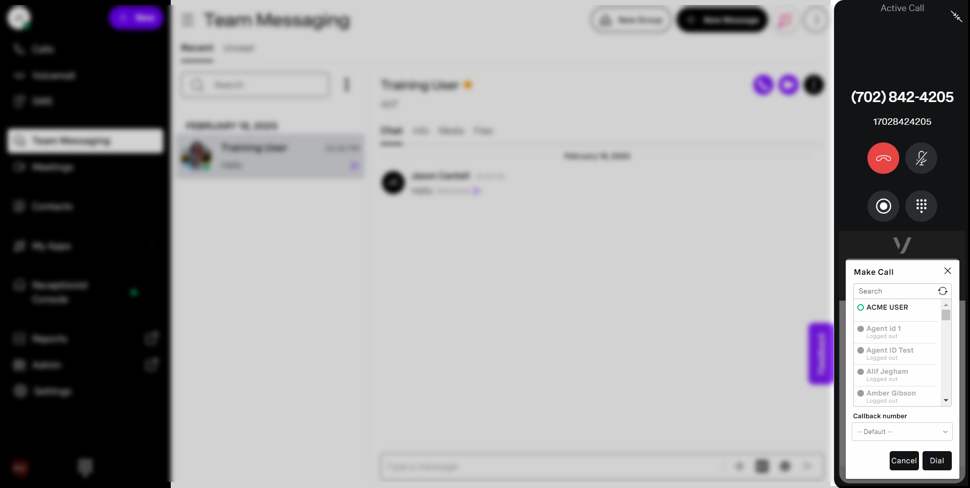 a filled-in circle, while the Business Contact’s circle will be hollow. When complete, press Enter or click Dial to connect to the selected agent. - When you can connect to the agent, your call control buttons will change;