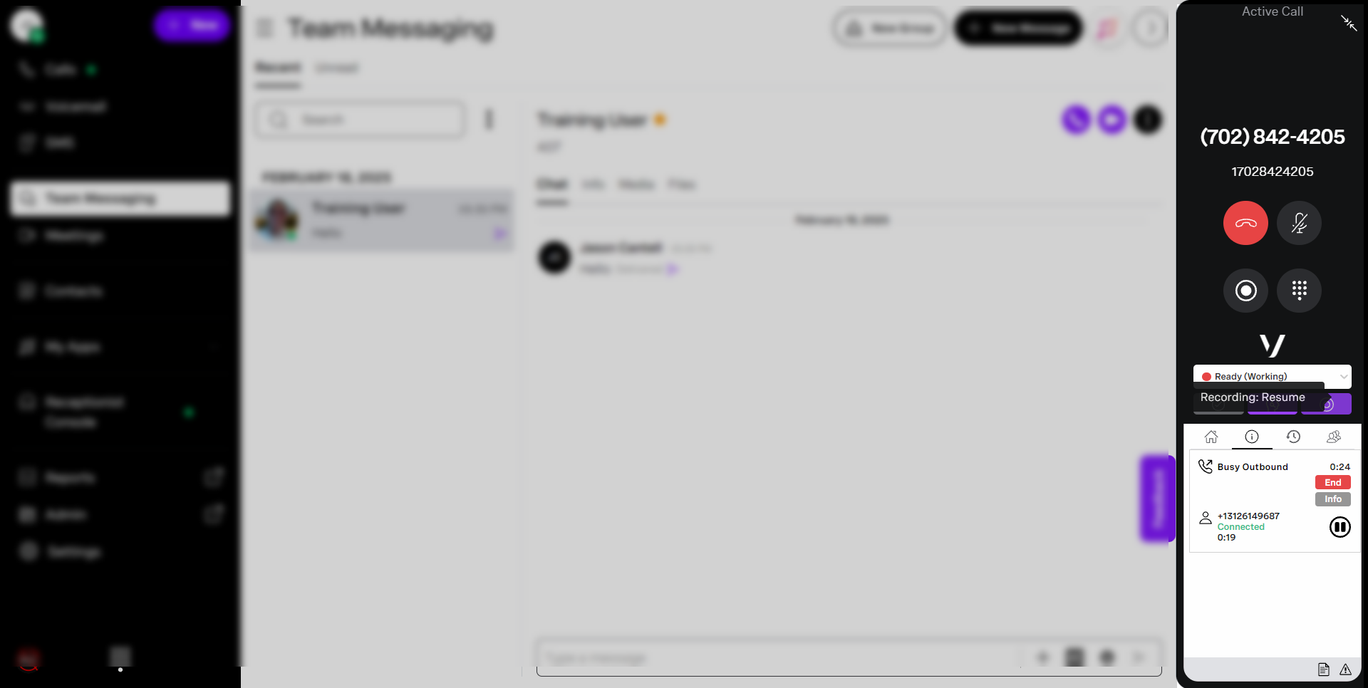 to a Start button. To resume the recording, click the Start button. - When you are not on an active call, you will see Recording: No Call with a