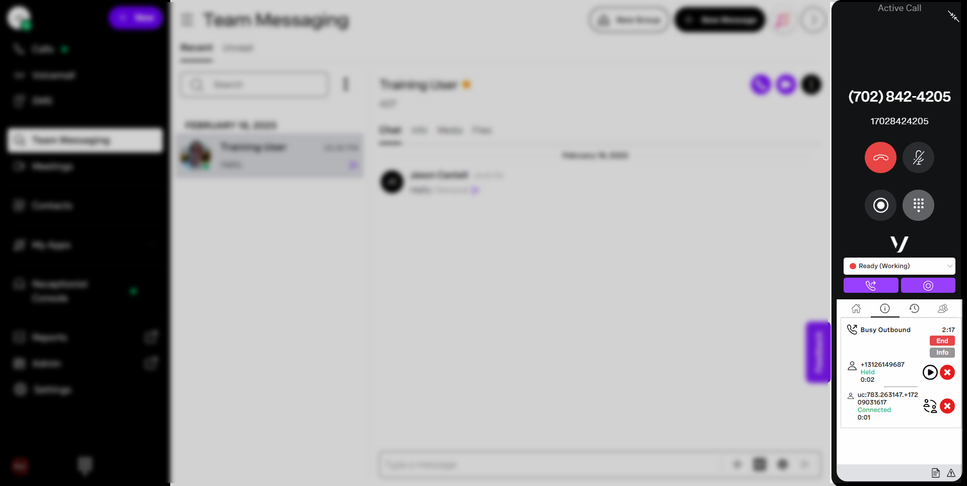 - Click the Make Call button, your status will change to Ready (Outbound).